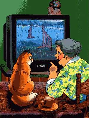 И вот посмотрите, какие иллюстрации. Привожу здесь три (с обложкой – четыре), но она вся насыщена ими. Как выразительны и Бейб, и Флай, вот мистер Хоггет разлегся на зеленом пригорке во всю свою длину, а вот говорливая миссис Хоггет в отсутствии собеседников обрушивает поток слов на кошку, а кошка ей внимает.